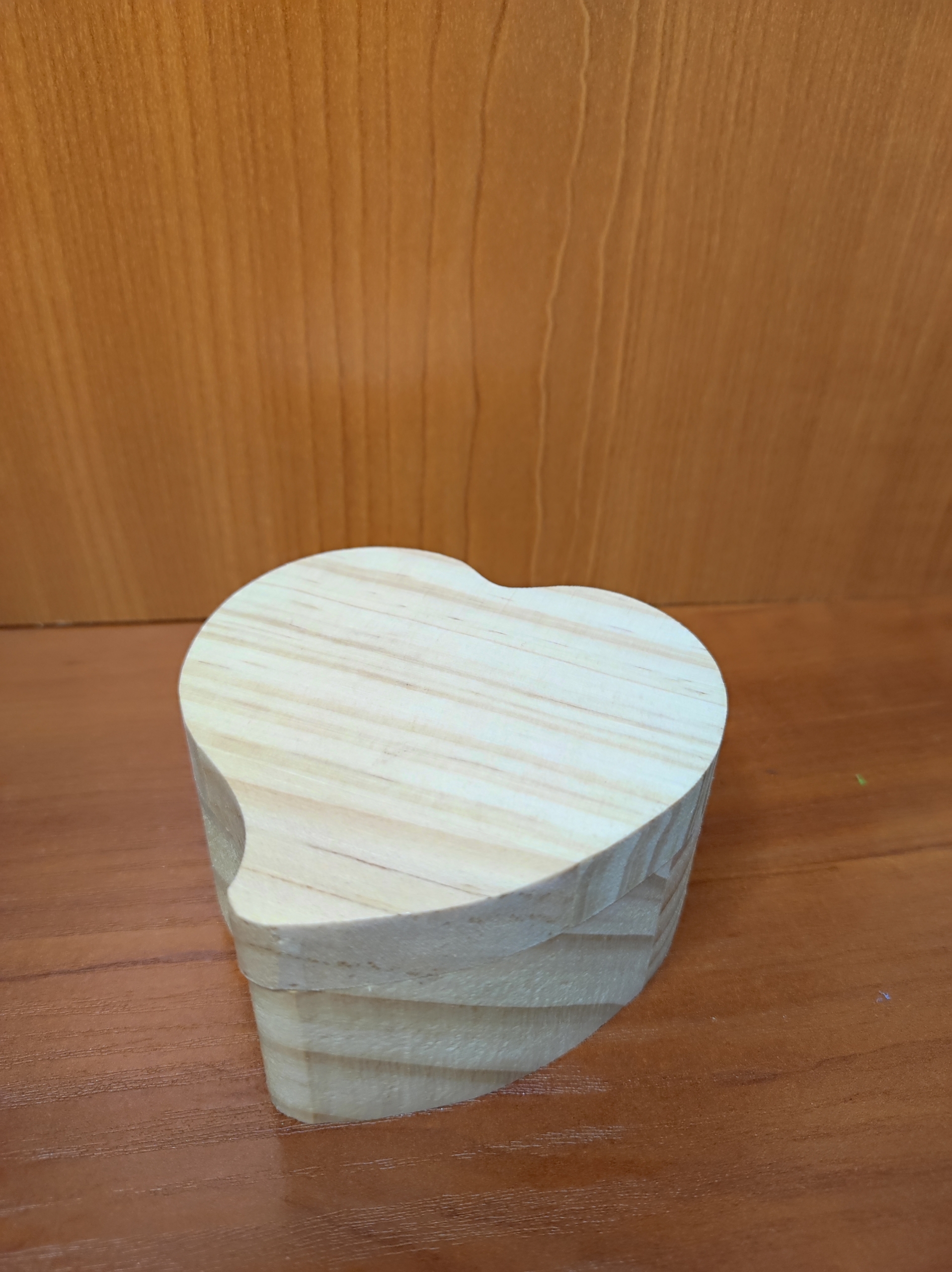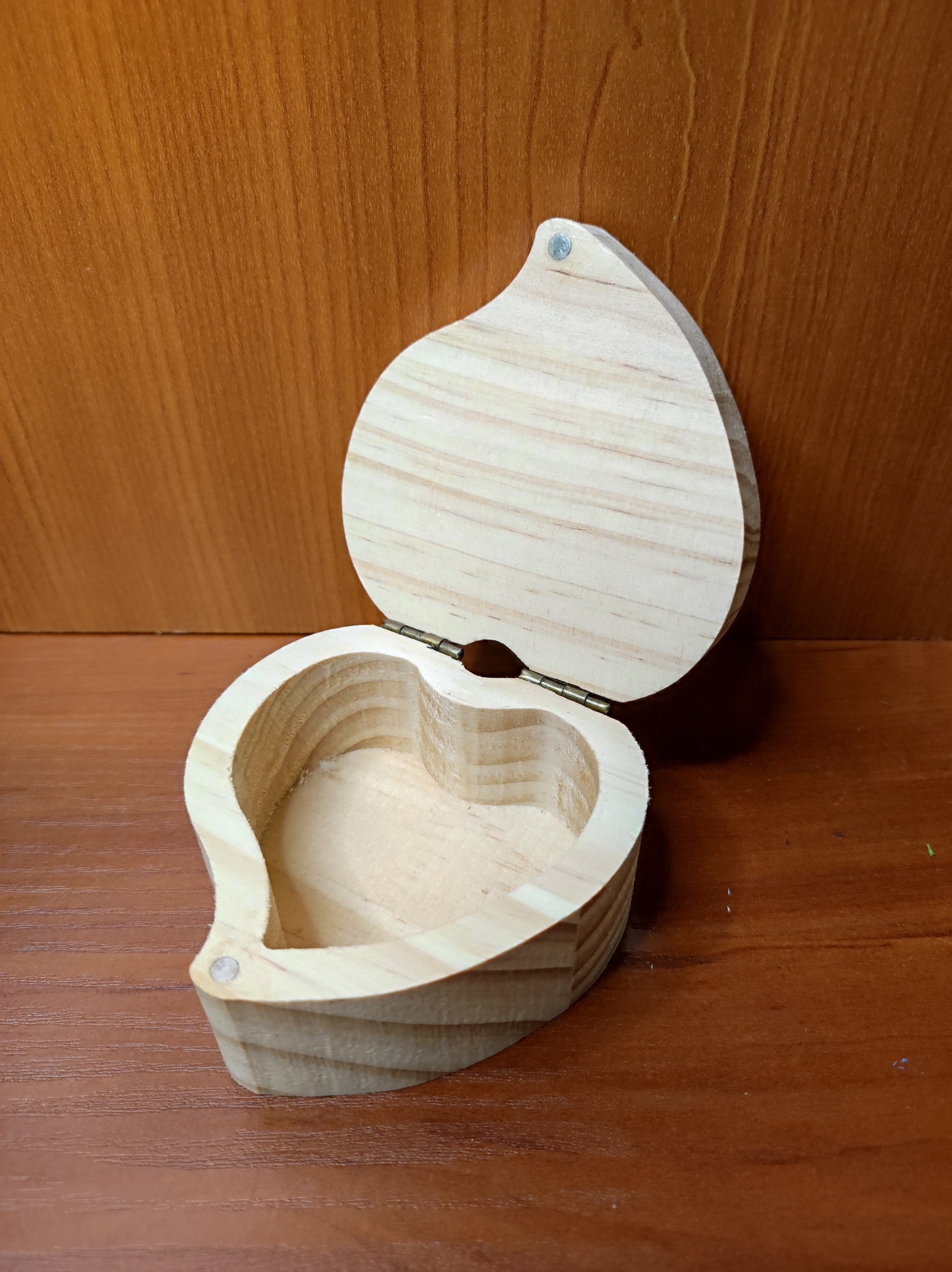 Дървена кутия във формата на сърце с магнитно закопчаване.