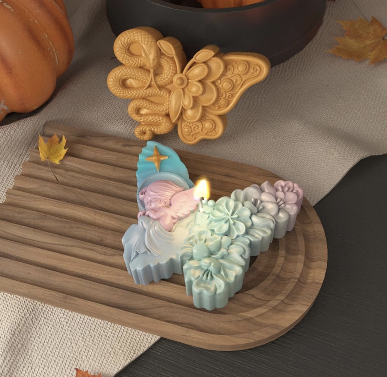 Силиконов молд пеперуда с флорални мотиви – за свещи и епоксидна смола