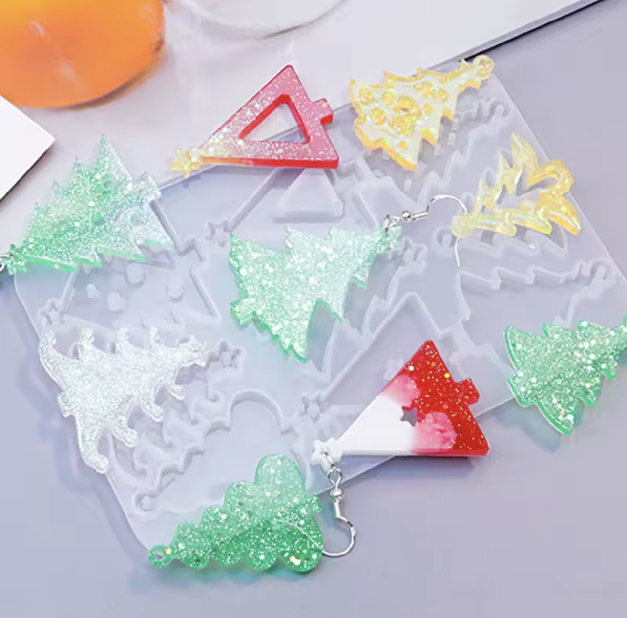 С този силиконов молд лесно ще създадете различни форми на елхи за празнични декорации, висулки или арт проекти. Подходящ е за епоксидна смола, UV смоли, глина и други декоративни материали. Гъвкавият силикон позволява лесно отделяне на готовите изделия и многократна употреба.