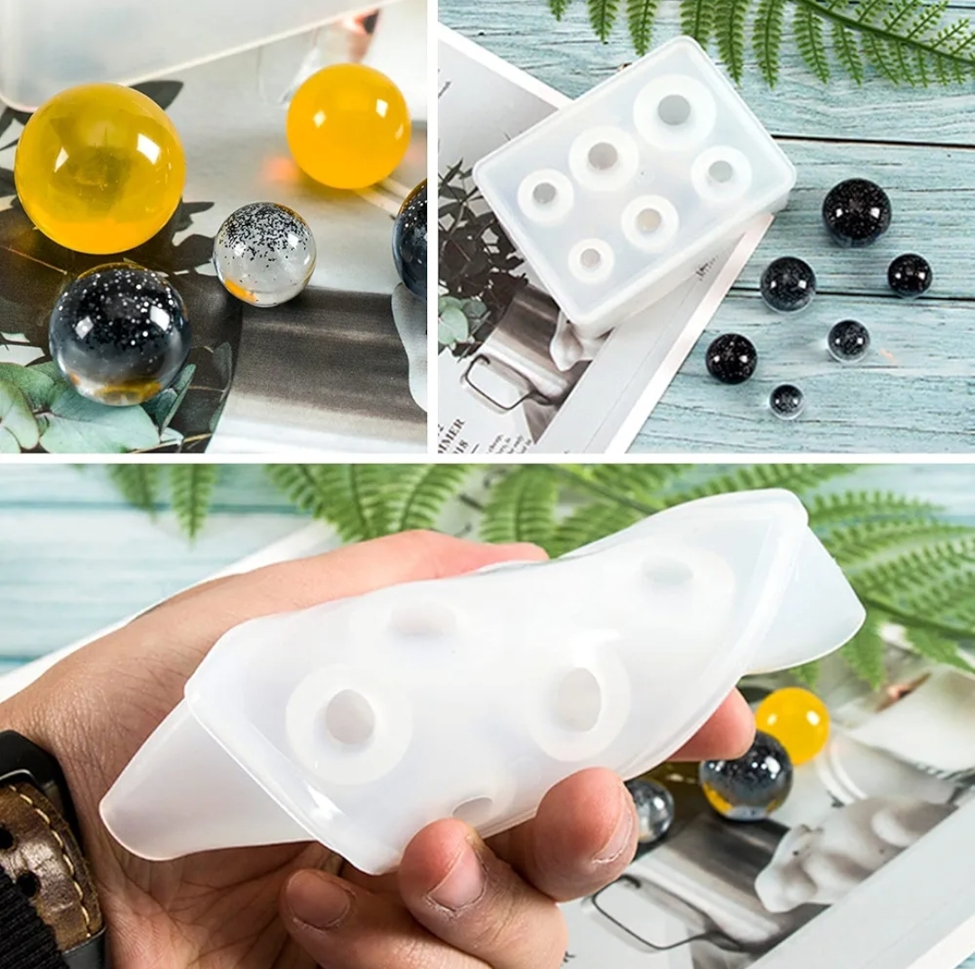Покани вдъхновението в своето творчество с този висококачествен силиконов молд за сферични елементи, който ти позволява да създаваш напълно гладки, равномерни и прозрачни топчета от епоксидна смола, гипс, восък или други материали. Молдът разполага с три различни размера форми, така че можеш да комбинираш ефекти, да създаваш сетове или да експериментираш без ограничения.