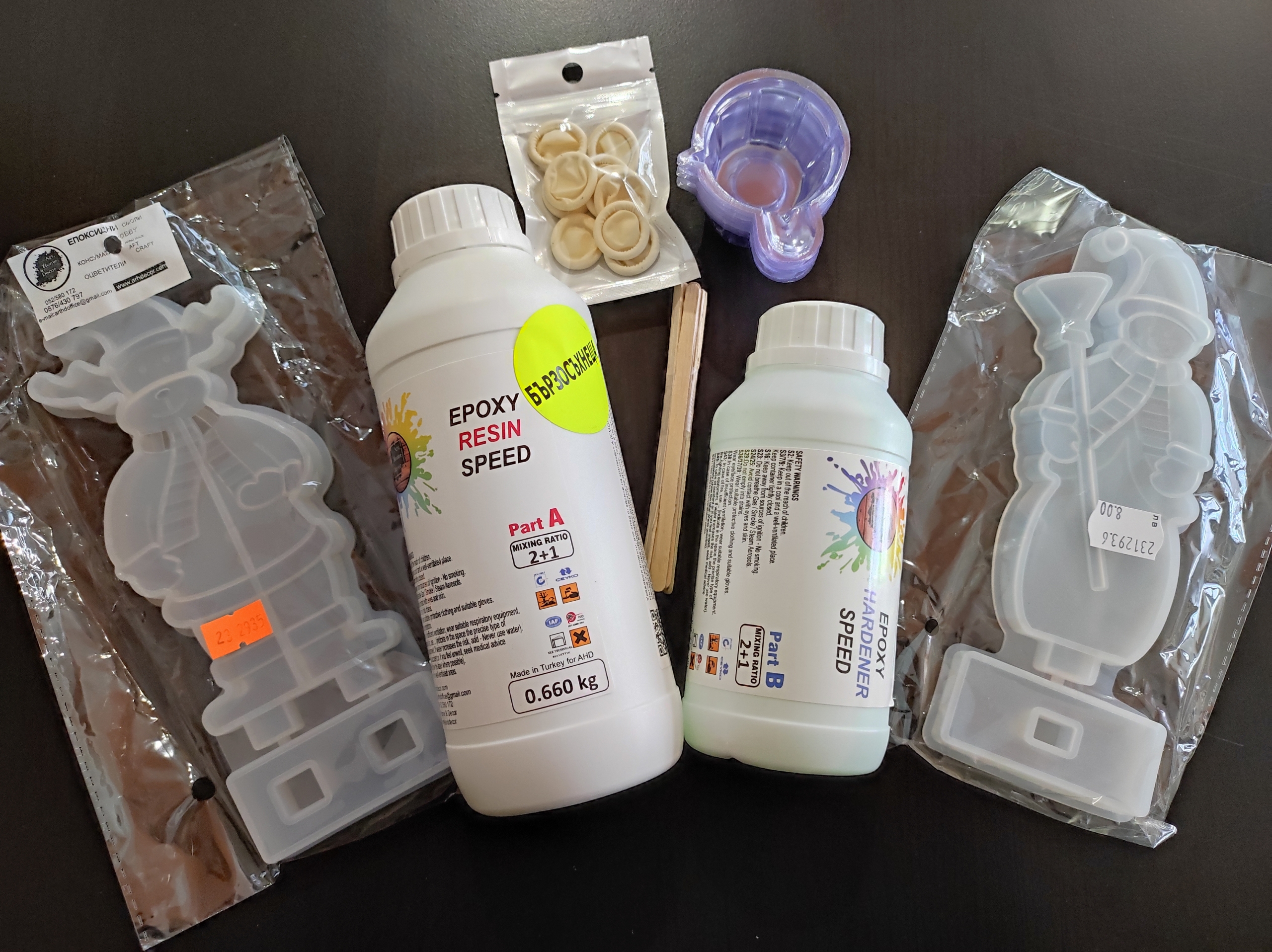 - Епоксидна смола Epoxy Speed – 1 кг – Бързосъхнеща епоксидна смола с кристално прозрачно покритие и лек UV филтър. Подходяща за бижута, аксесоари и декоративни изделия. Смесва се на малки порции, работи се бързо, а крайният резултат е гланцирана и бляскава повърхност. Без съдържание на солвенти, спиртни съставки и разтворители. Подходяща за работа в домашни условия. Нанасяне в единичен слой до 0,8 см дебелина. Време за работа – до 60 минути. Препоръчителна температура на работа – до 24 °C. Пропорция: 2 : 1 (2 части смола : 1 част втвърдител). Съдържание на 1 кг комплект: 666 г смола + 334 г втвърдител. Време за пълно изсъхване: 15 – 24 часа. Важно: Поради бързото си съхнене, смолата трябва да се смесва на малки порции, за да не се загрява прекомерно. Работата трябва да се извършва бързо, като материалът се обезвъздушава сам отлично и не изисква допълнителна обработка.