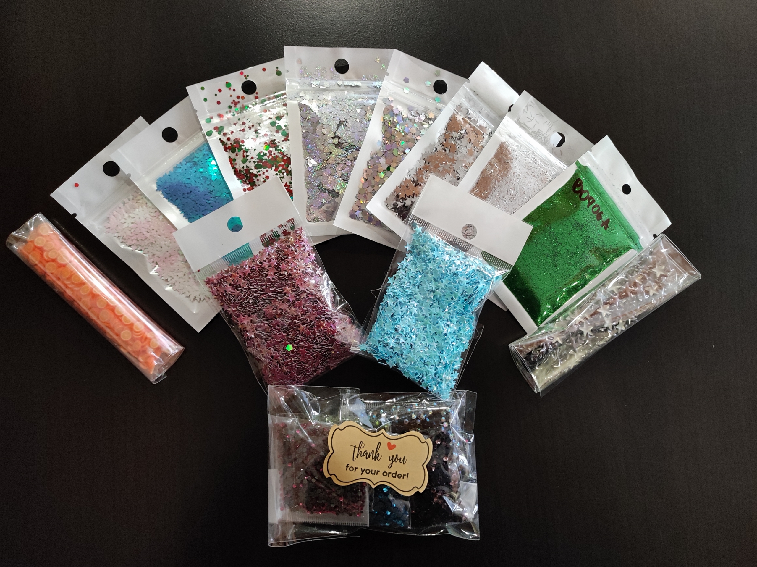 - Разнообразие от брокати и други по 1 пакетче ( около 10 гр.) – 12 бр. общо: